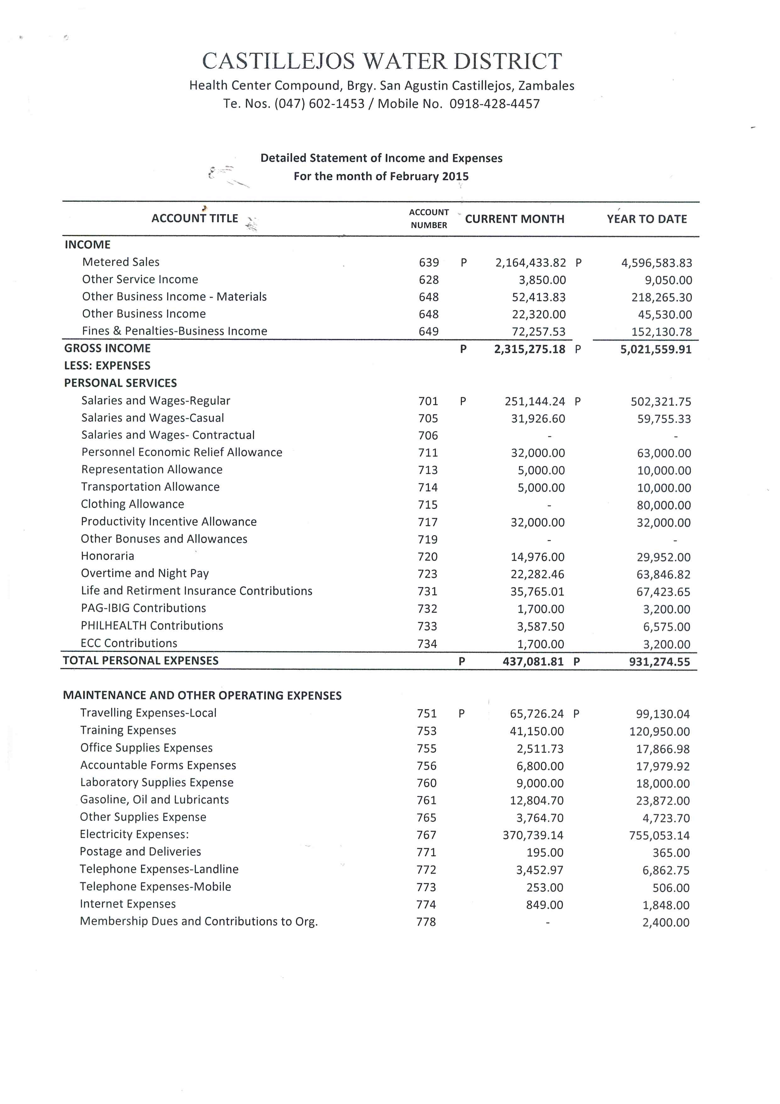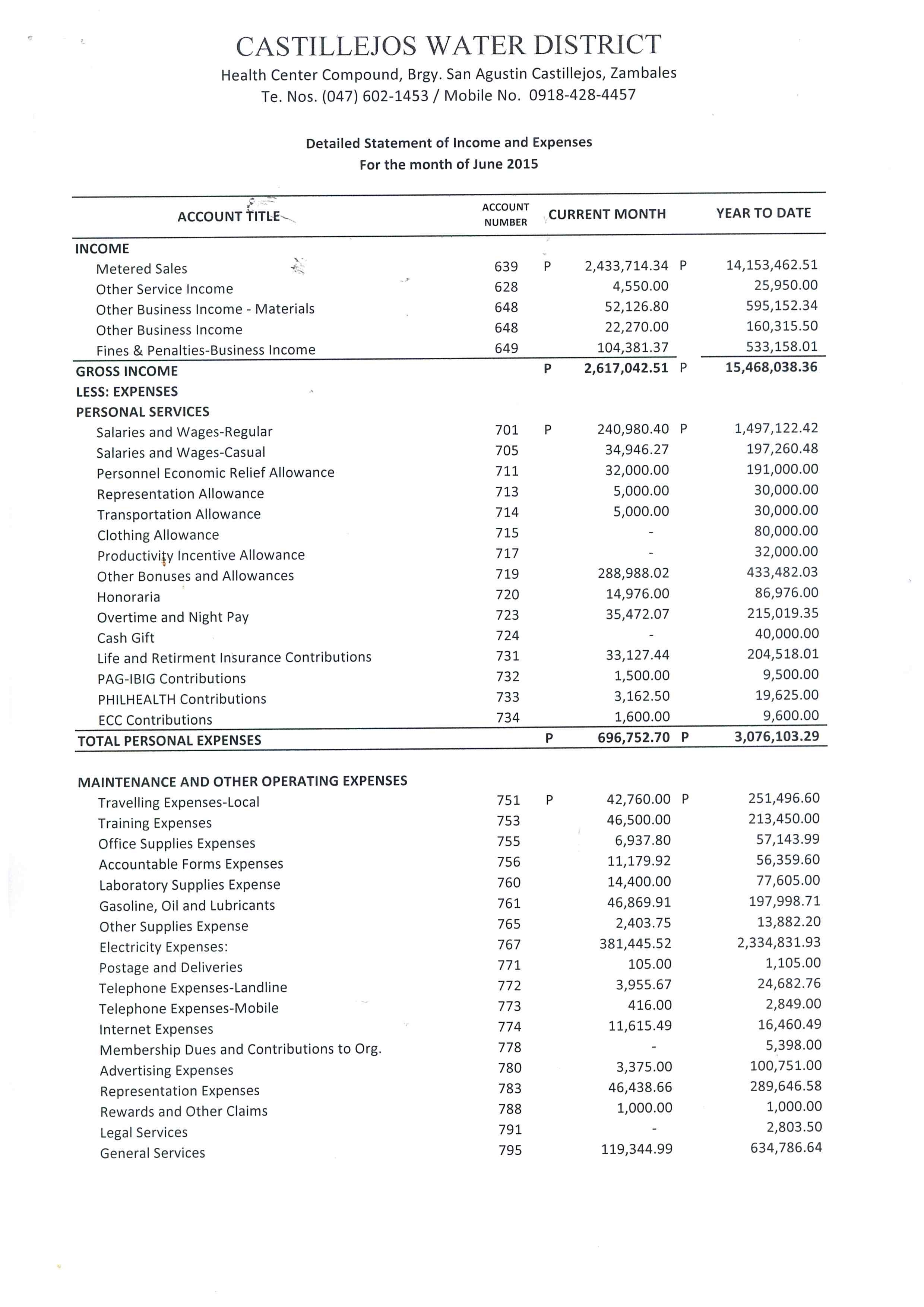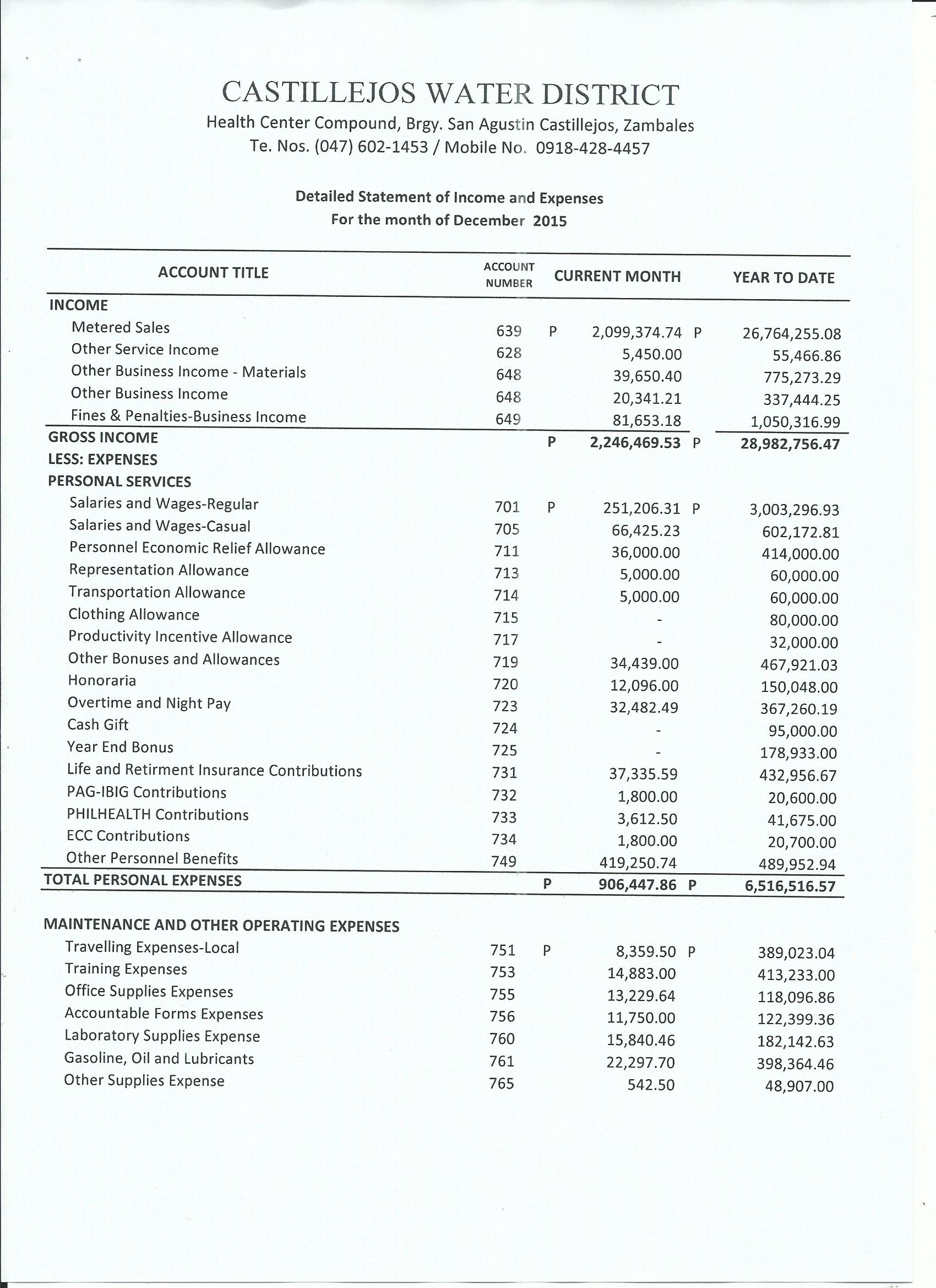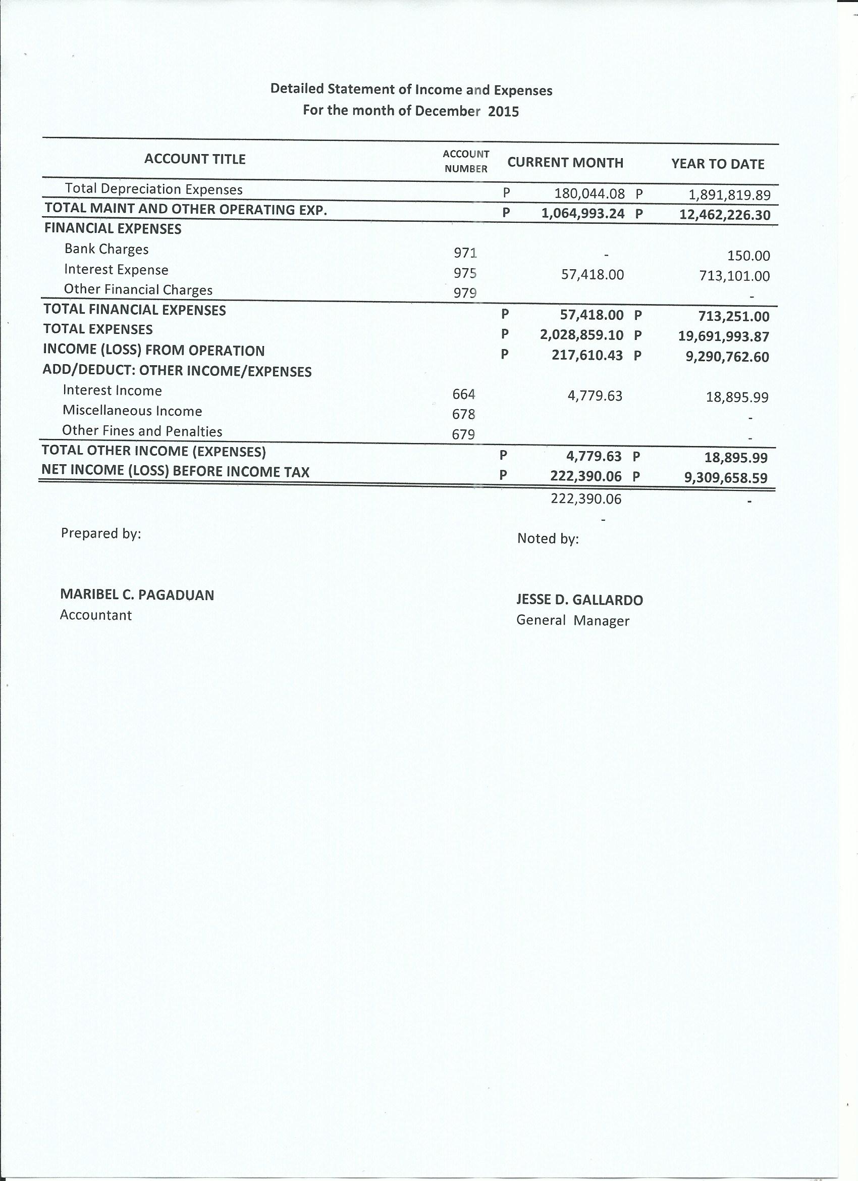 Monthly Financial Reports 2015