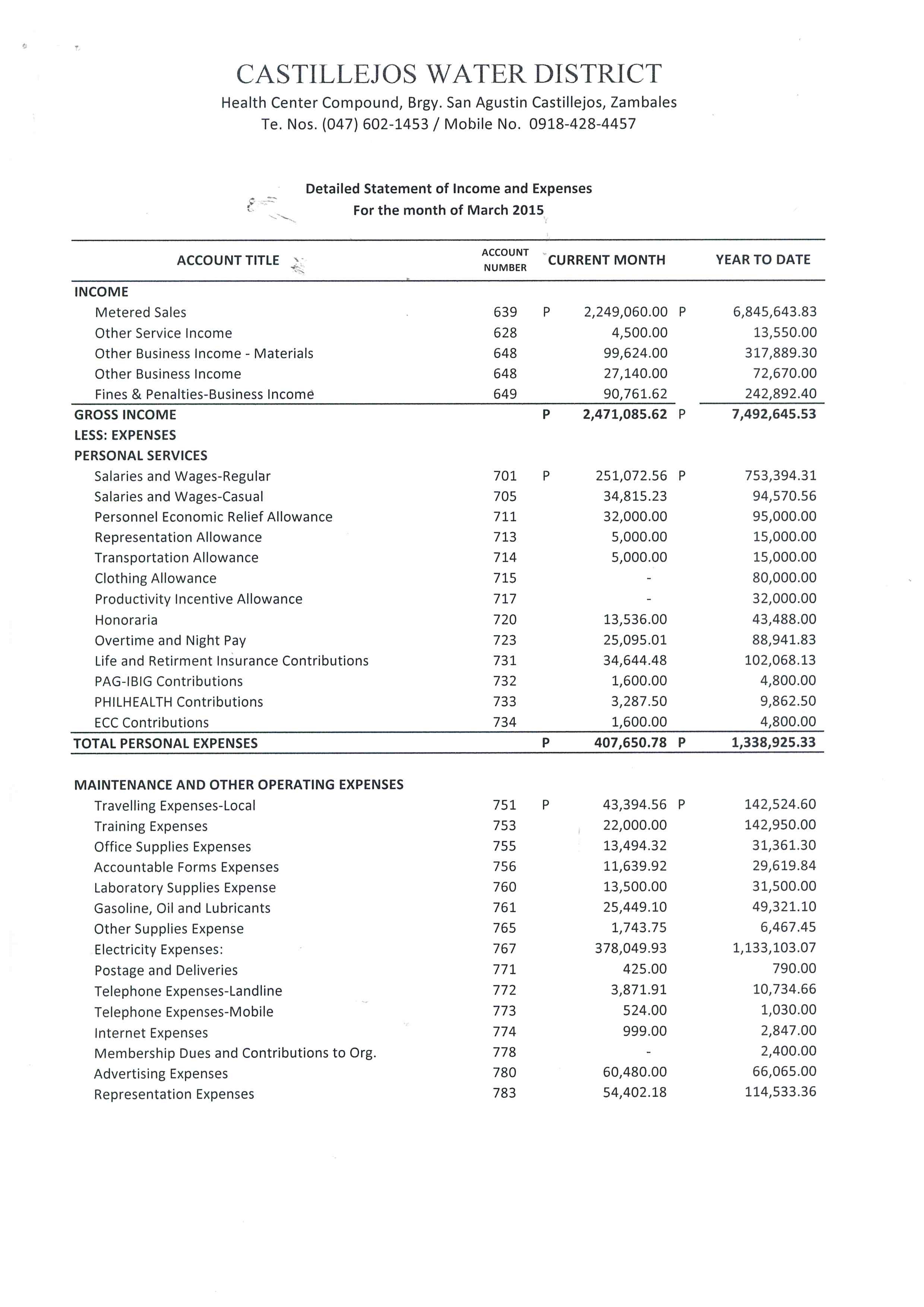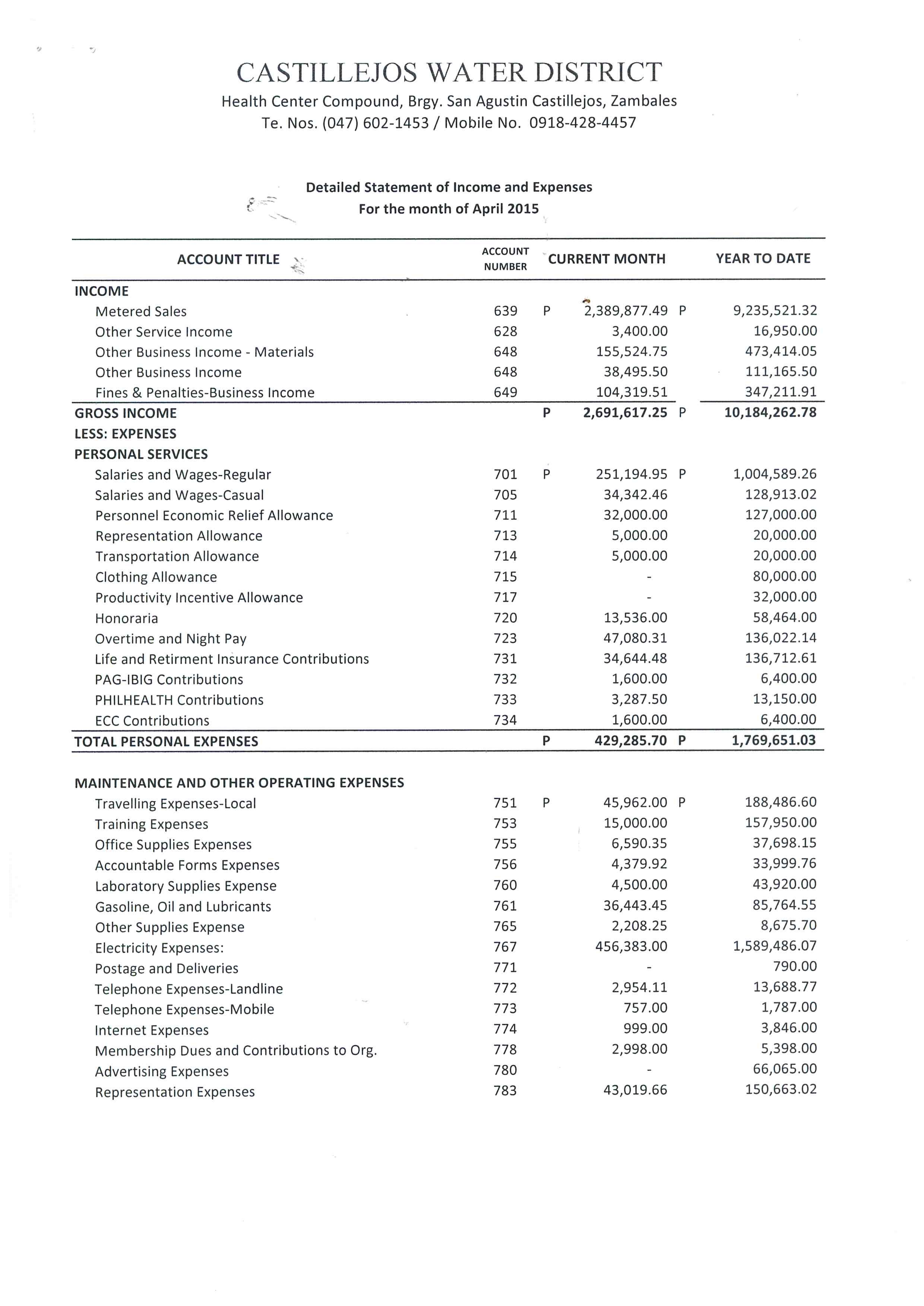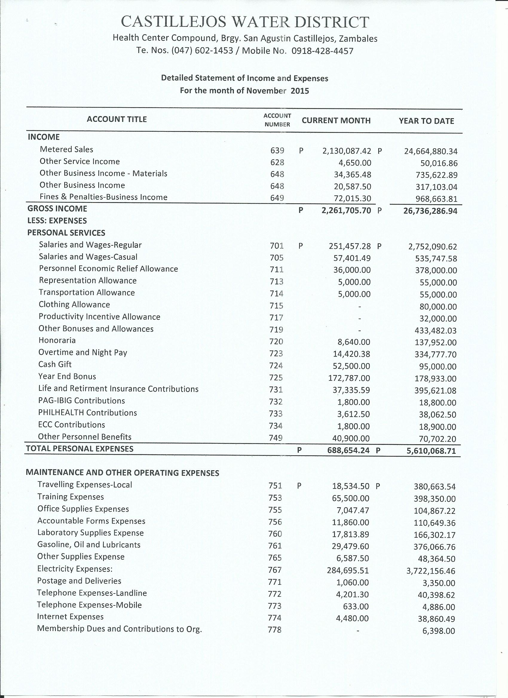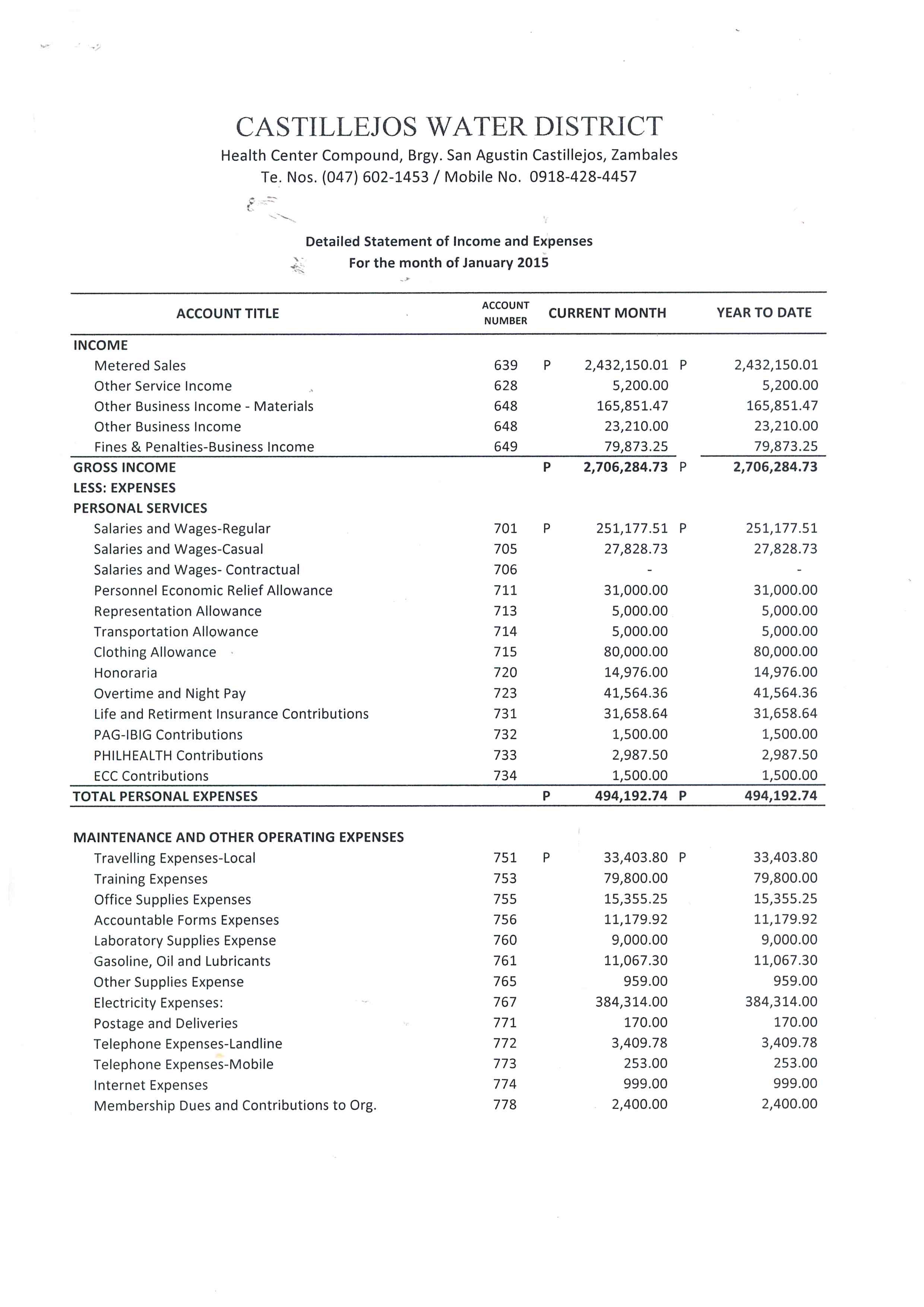 Monthly Financial Reports 2015