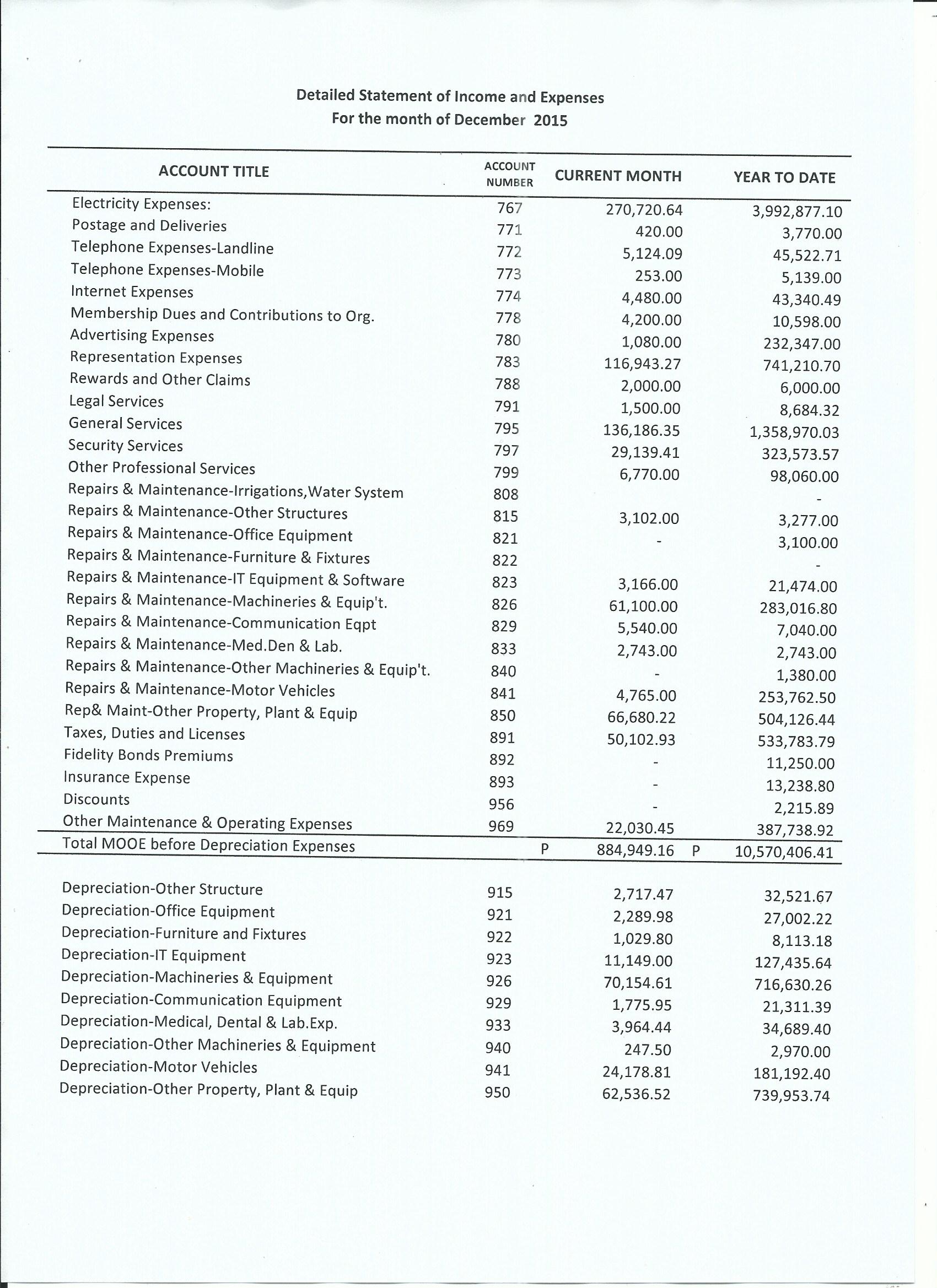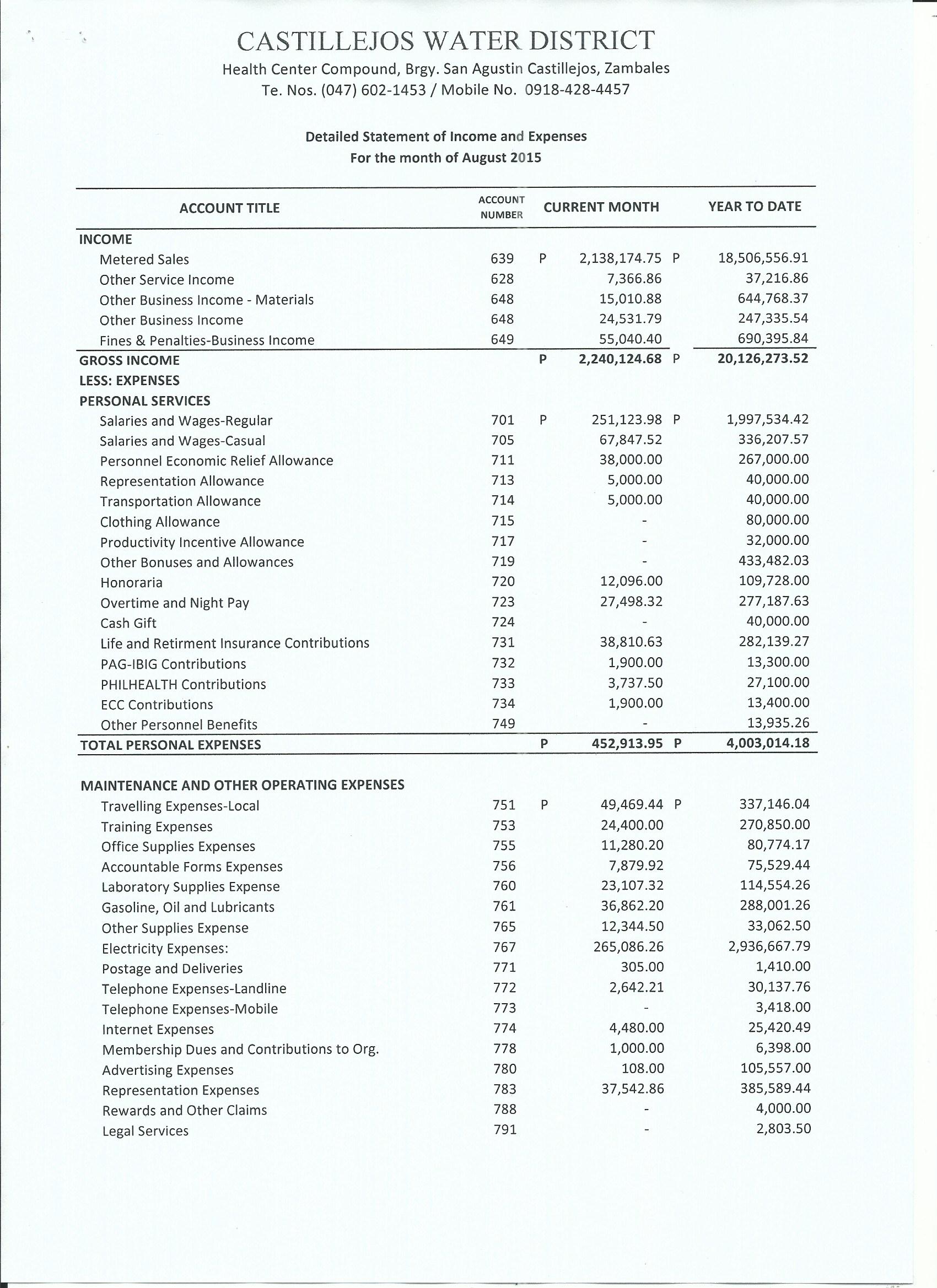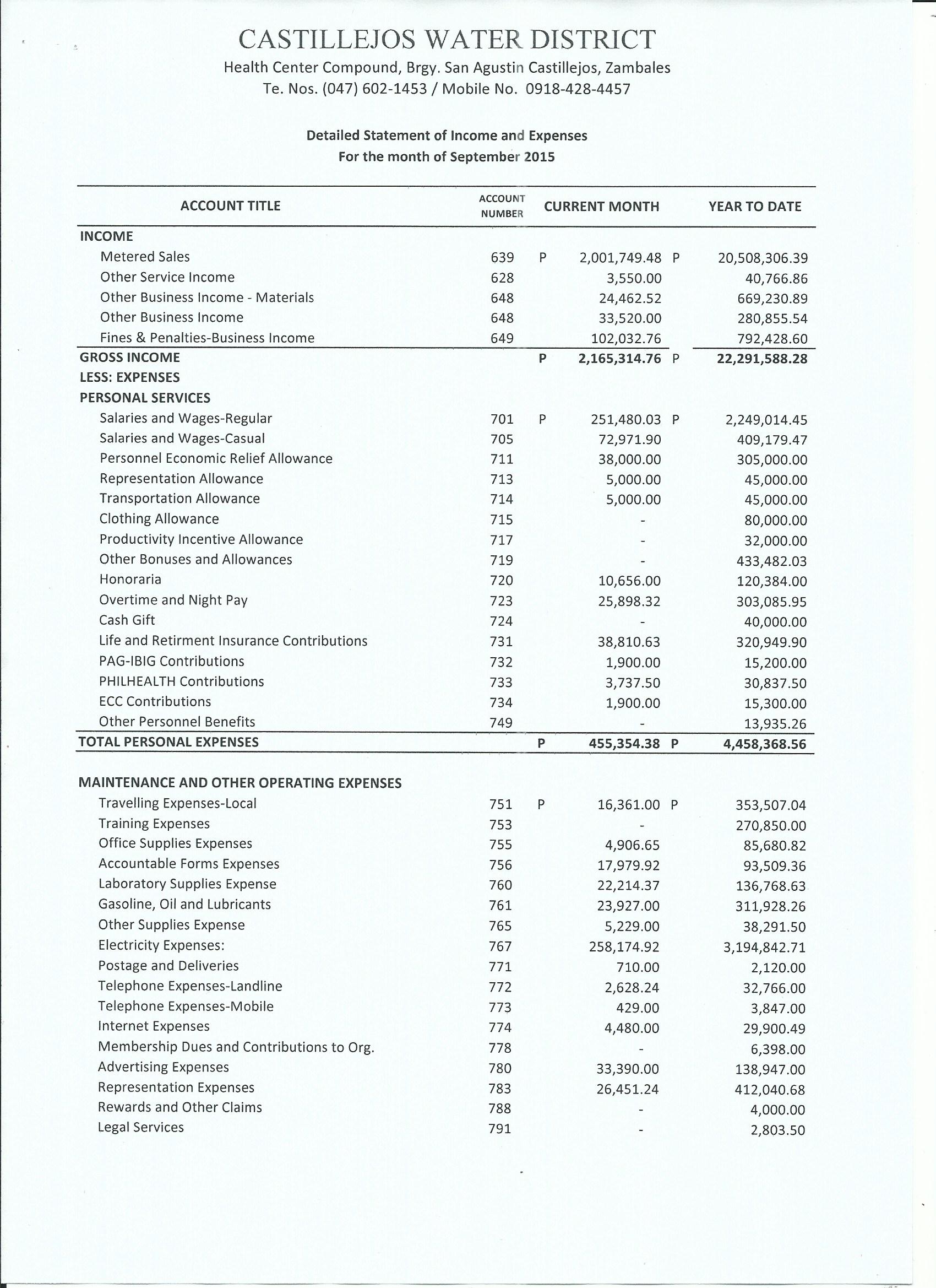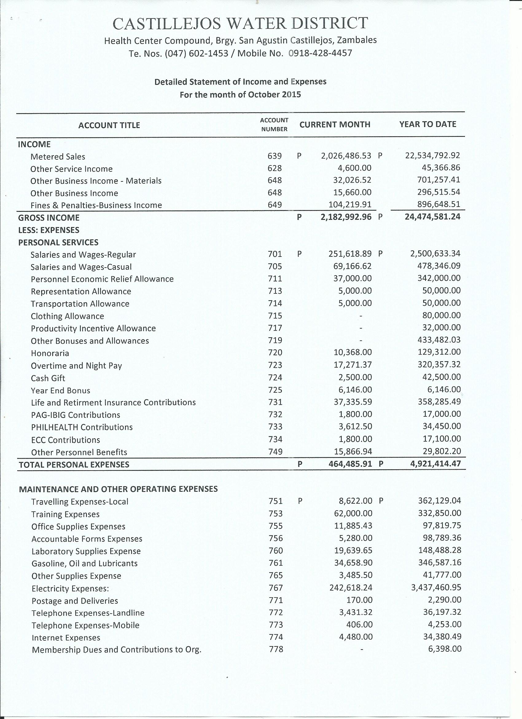 Monthly Financial Reports 2015